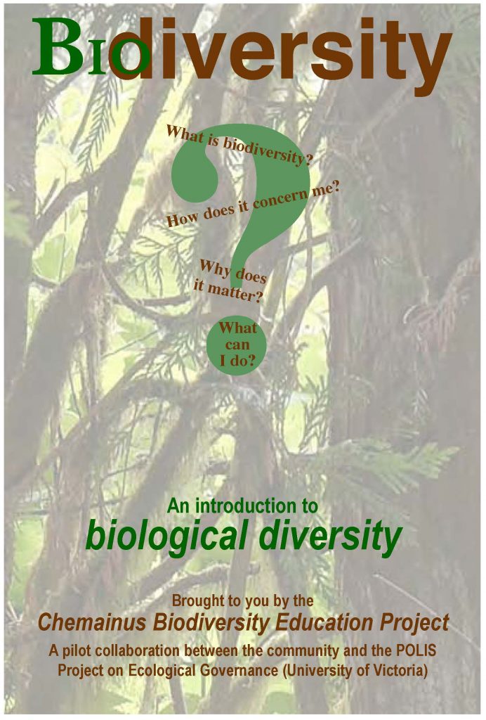 The pamphlet provides a brief introduction to biodiversity, produced by the Chemainus Biodiversity Education Project – a pilot collaboration between the community and the POLIS Project on Ecological Governance at the University of Victoria.