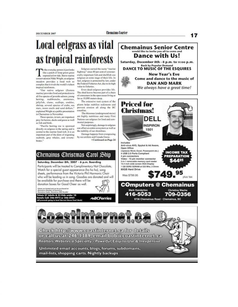 Chemainus Courier: "Local eelgrass as vital as tropical rainforests"