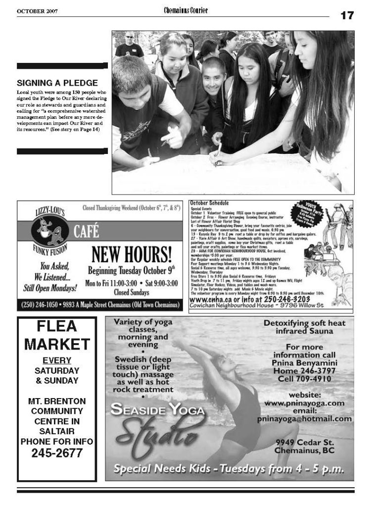 Chemainus Courier: “Signing a Pledge” Published On: October 1st, 2007Author: Chemainus Courier Chemainus Biodiversity Education Project media report, which details archival events and activities from the project’s first year of pilot activities. Chemainus Courier: "Signing a Pledge"